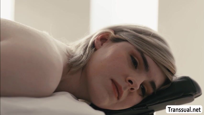 Busty shemale masseuse lets her shemale client get naked and she then starts massaging her body.Suddenly,she gets horny and start sucking the shecock of her client.Next is,she lets her bend over and she then fucks her wet ass so hard.
