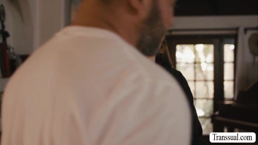 Slutty shemale goes to the house of husbands friend and lets him massage her body.After that,while massaging the masseur gets horny and he then licks her ass to makes it wet.In return,she throats his big cock first and lets him fuck wet ass so hard.
