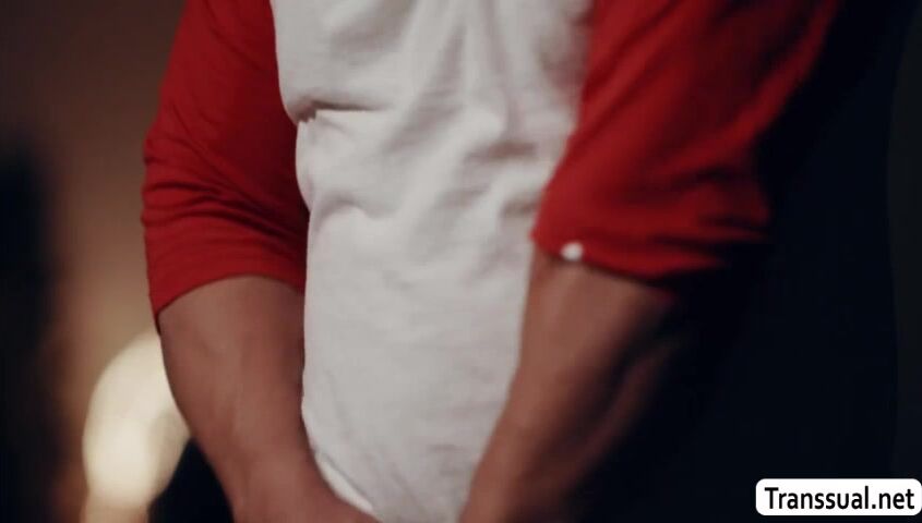 Pervert stepbro jerks off his hard cock while his shemale stepsister is taking a nap.After that,his stepsister lets him massage her shoulder and she then throats his big cock passionately.In return,he fucks her wet ass so deep and hard.