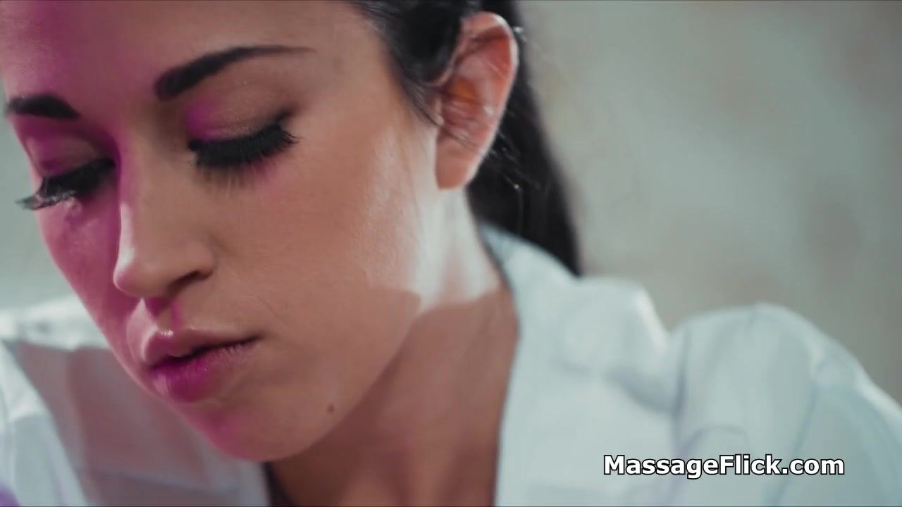 Beautiful masseuse seduces house wife on the table