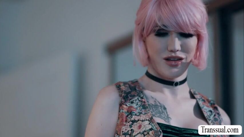 Pink haired shemale lets her sad stepbrother fuck her ass