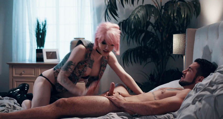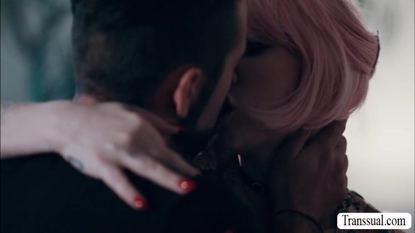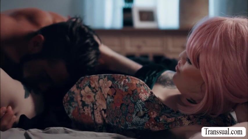 Pink haired shemale comforts her stepbrother on his bed by letting him kiss her passionately.Next is,she goes down and she then throats his big cock passionately.Next is,she lets him fuck her wet ass so deep and hard.