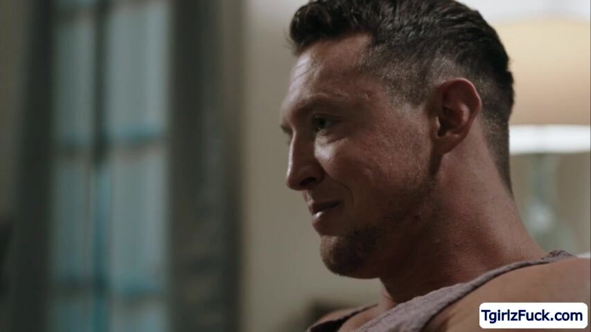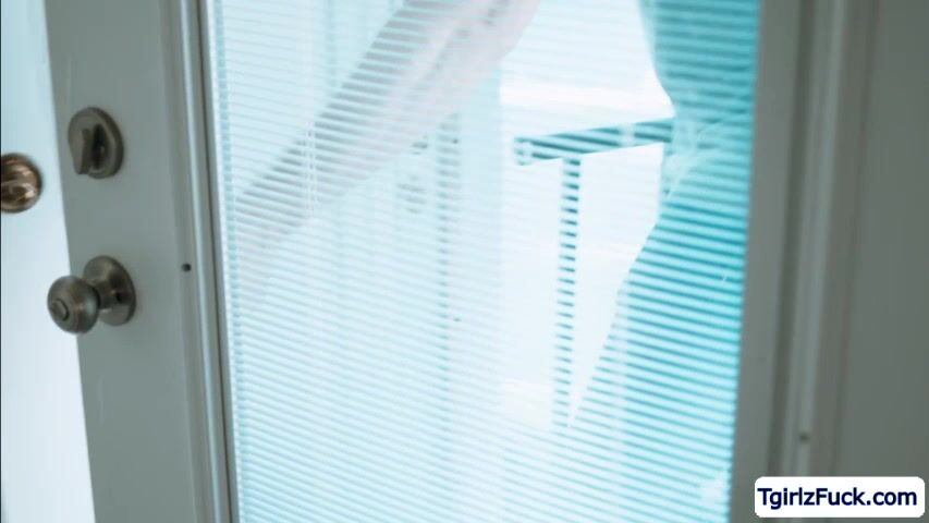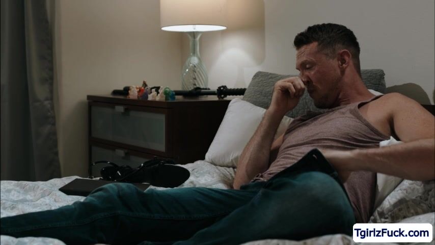 Shorthaired tranny babe Daisy Taylor gets in the room of her hunk stepbrother Pierce Paris and catches him masturbating. The horny tbabe crawls towards his huge hard coc to sucks and teakes it up her ass from behind.