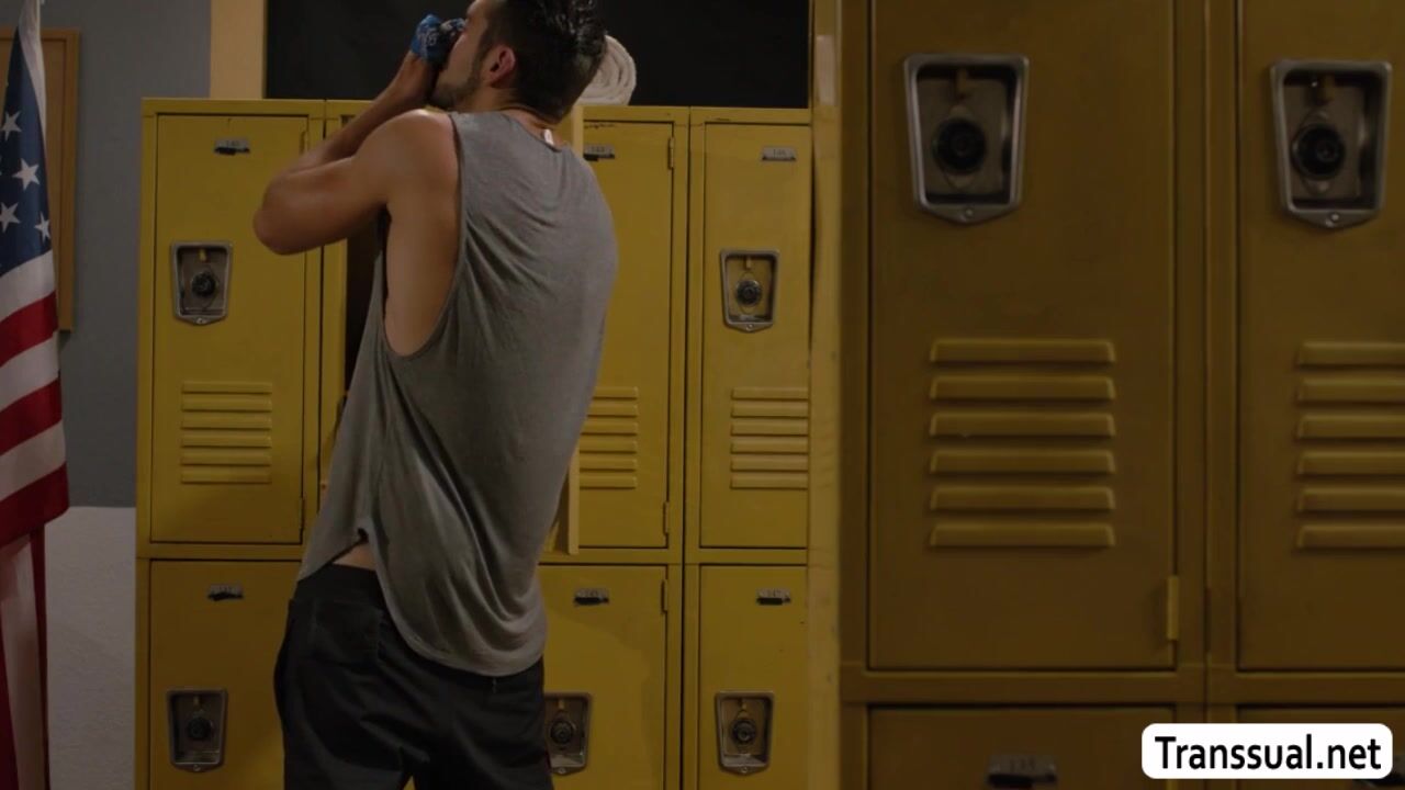 Sexy ebony TS caught a guy watching her while shes naked and taking a bath in the gym.Instead of calling cops,she lets him in and she then throats his big cock passionately.In return,the guy fucks her wet ass so deep and hard.