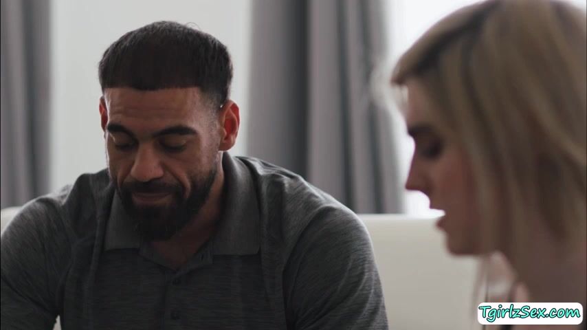 Slim blonde tbabe Ella Hollywood comforts her new stepdad Ricky Larkin from his break up. The horny blonde ts grabs his huge hard cock and puts it in her mouth before hebangs her in the couch.