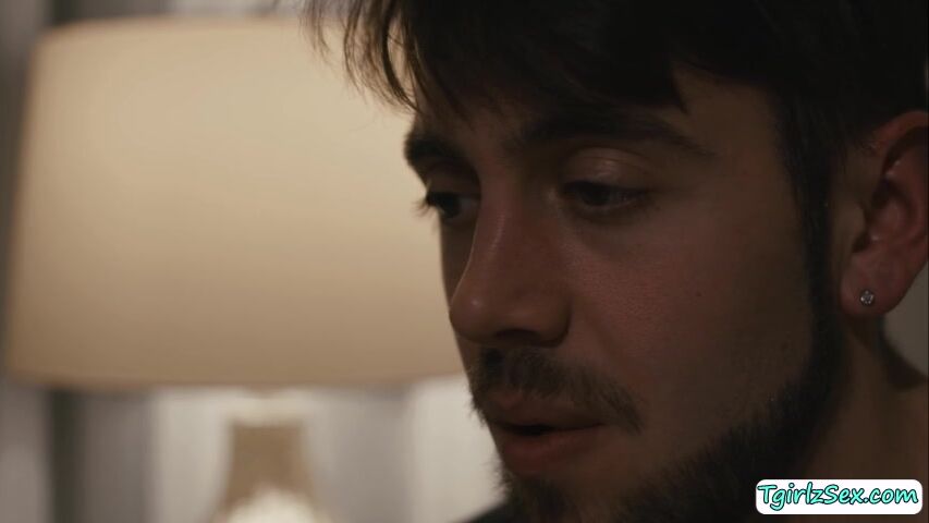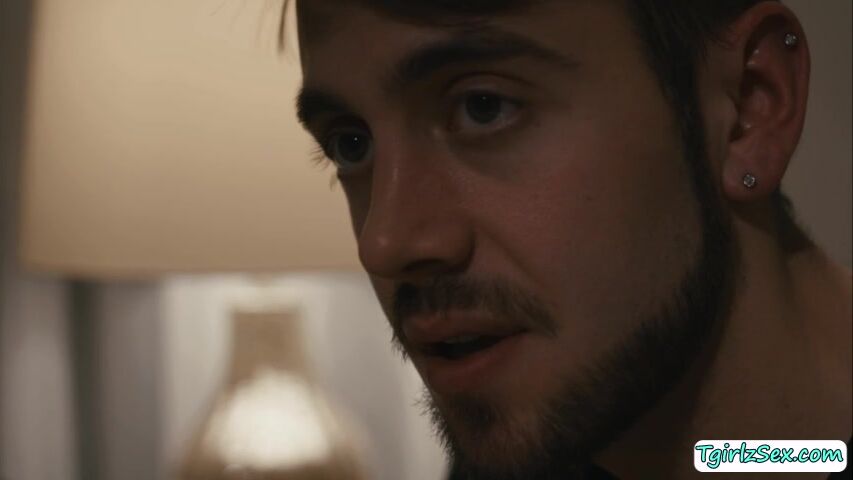 Hunk stud Dante Colle comes home for the holidays, he is surprised his stepdad is not there, but his tranny stepmom Eva Paradis is. The two sit in the bed to talk and she finds her way to suck her stepsons cock and rides on it.