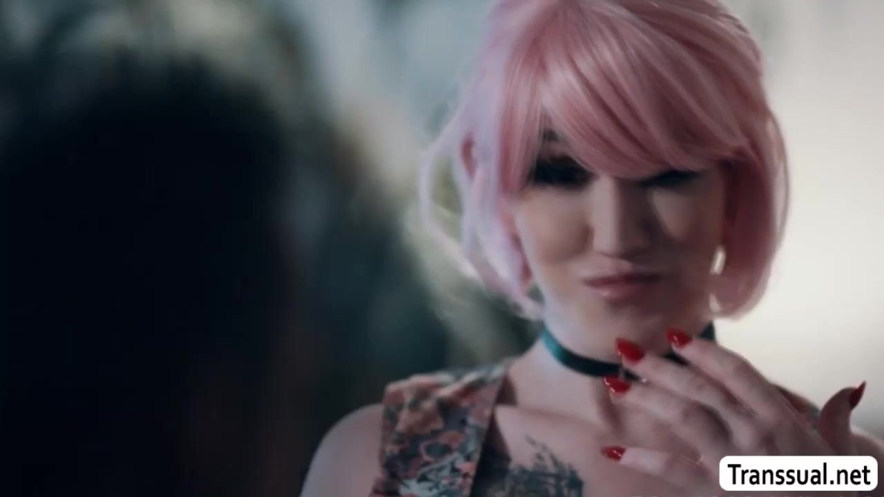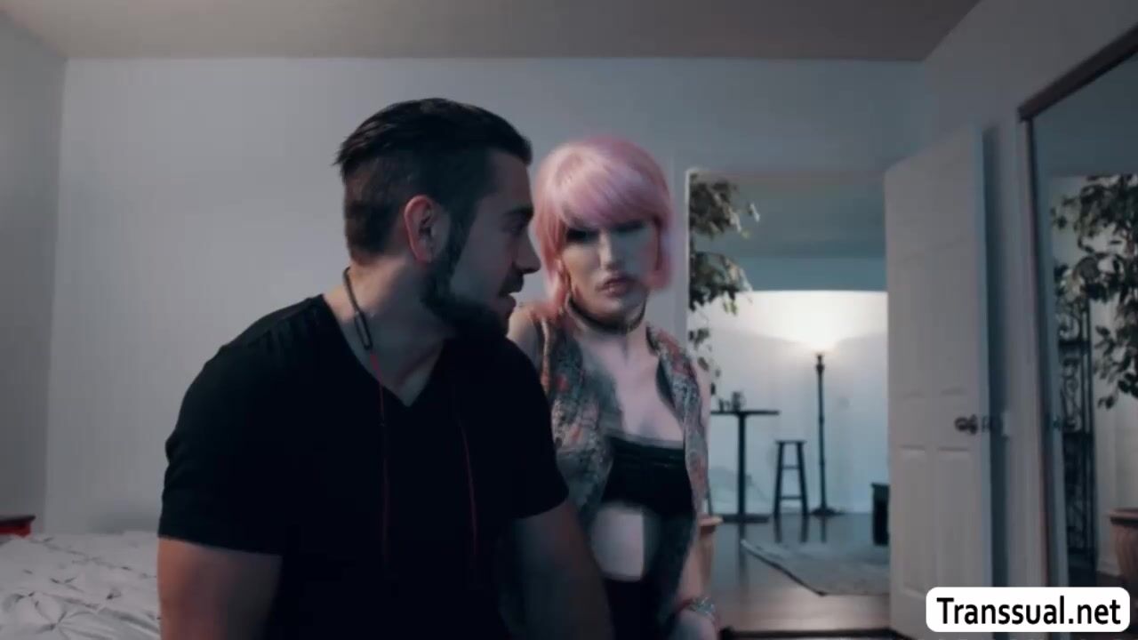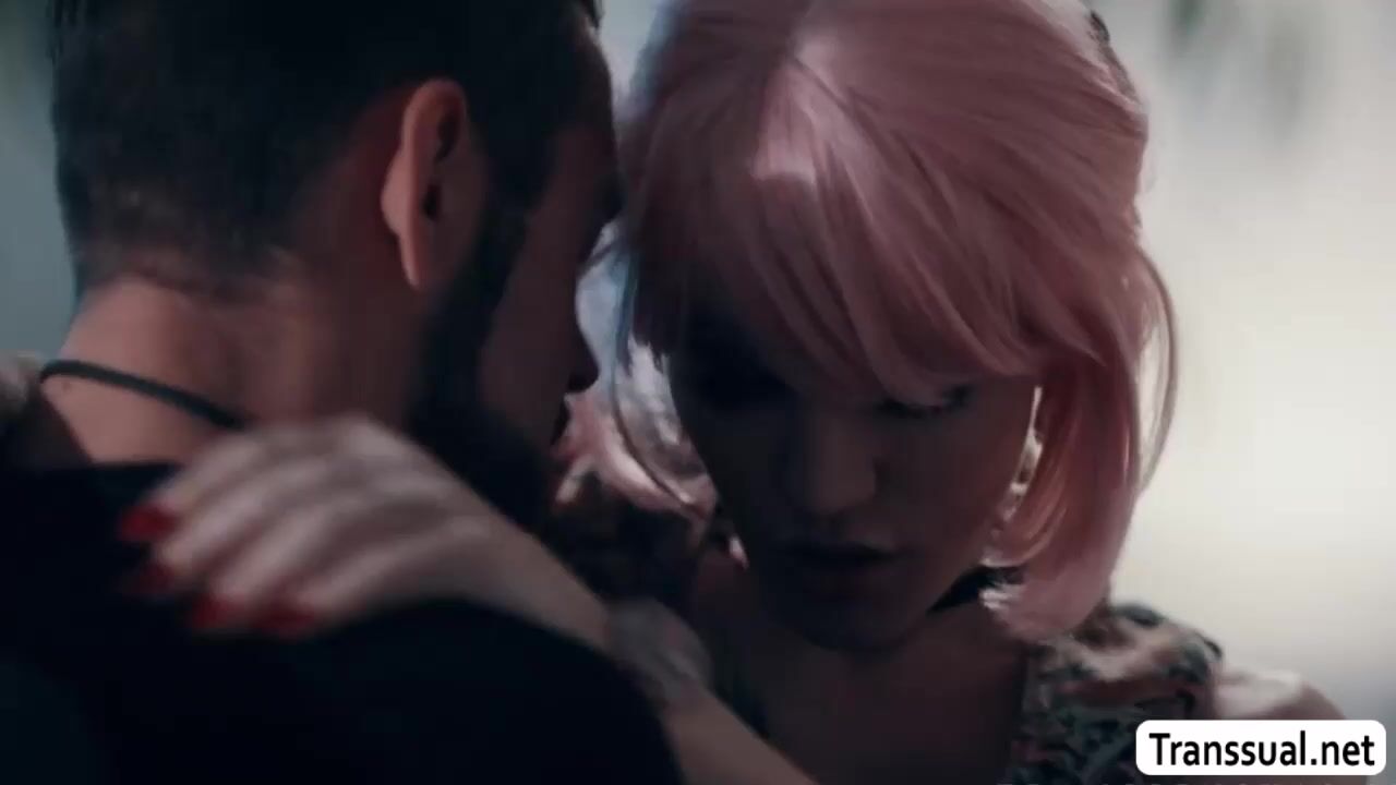 Shemale pink haired comforts her stepbrother because he looks so sad.They start kissing each other and busty shemale throats stepbrothers big cock passionately and lets him fuck her wet ass so deep and hard.