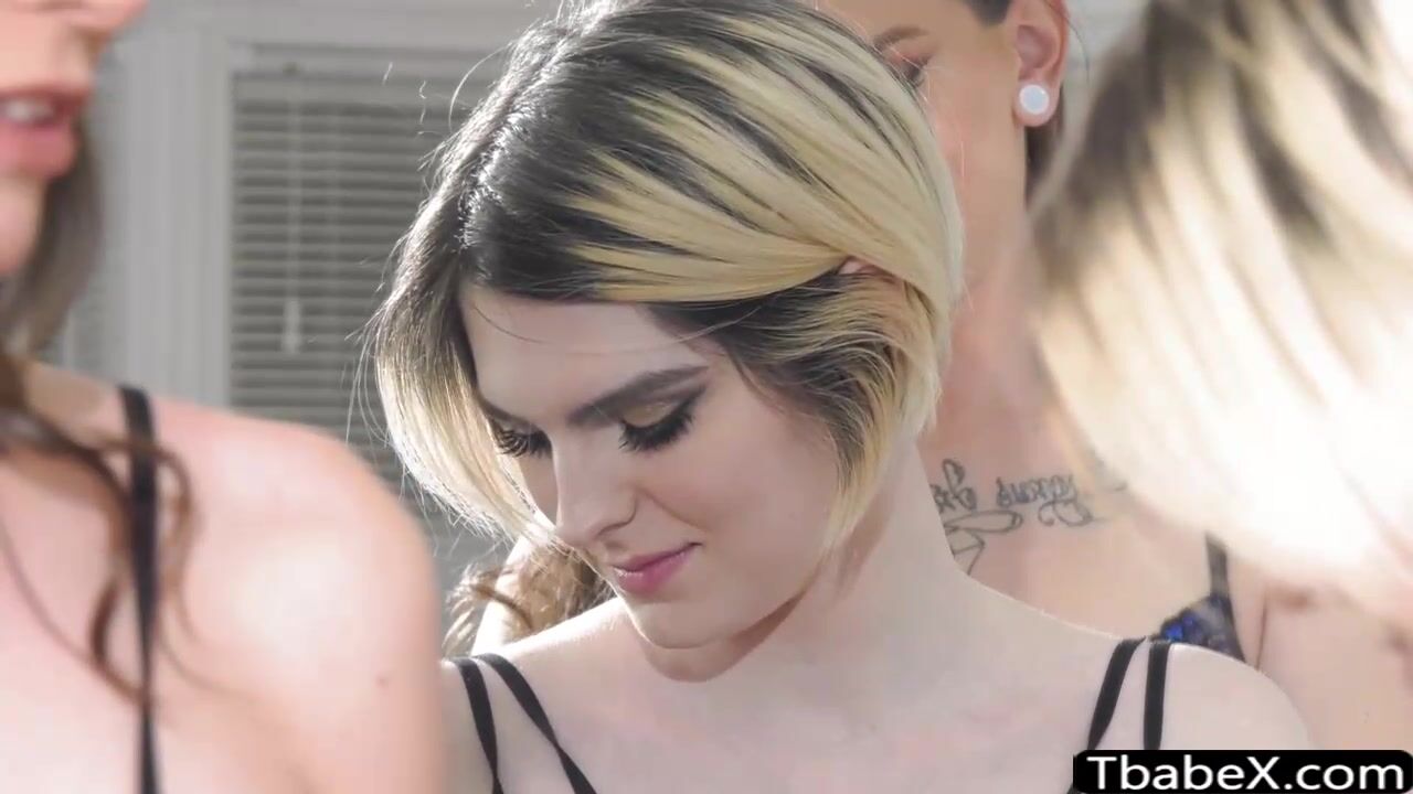 Busty shemales Jenna Creed and Korra Del Rio stay at small tits tranny Ella Hollywood for the weekend. In her room, they put on sexy lingerie until they kiss and take turn giving their big cocks blowjob then enjoy hardcore group anal sex.