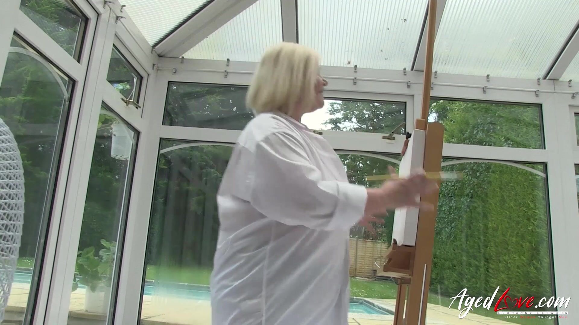 Mature porn star enjoying hardcore sex with handy guy during her art session Find full length videos on our network Oldnanny.com