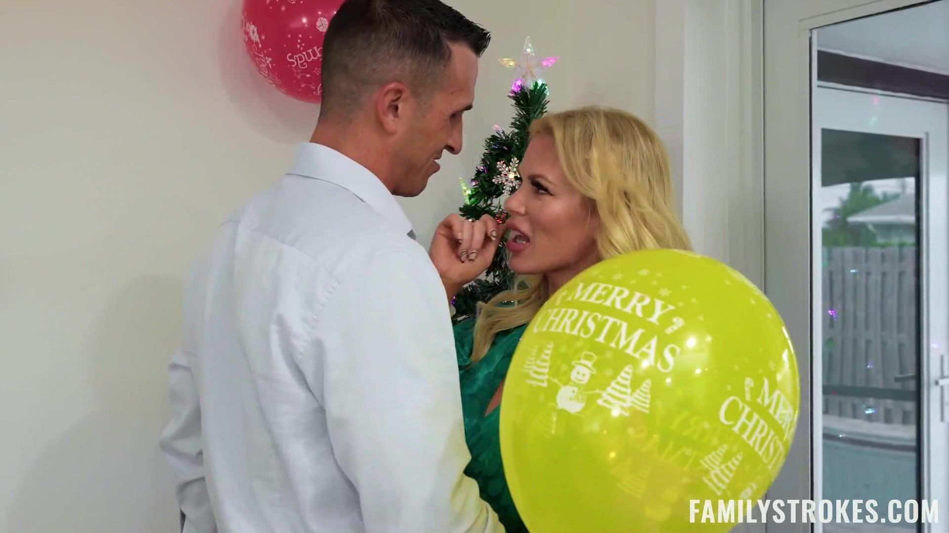Stepdaughter doesn't know i'm the santa and sucking my dick with my wife