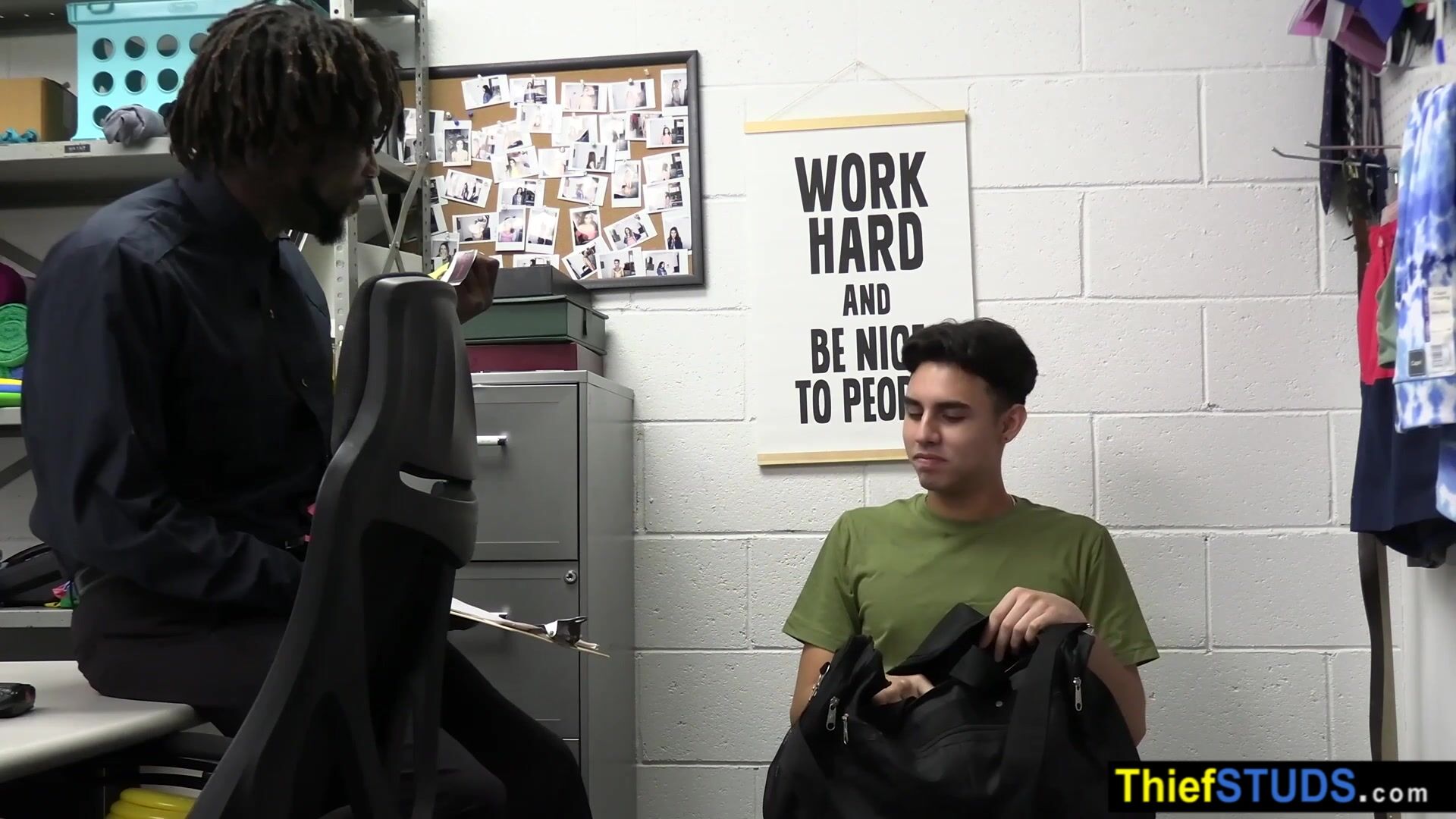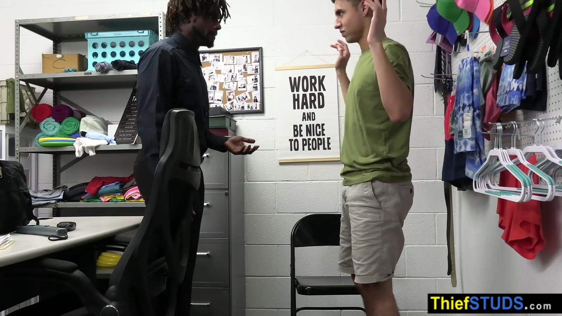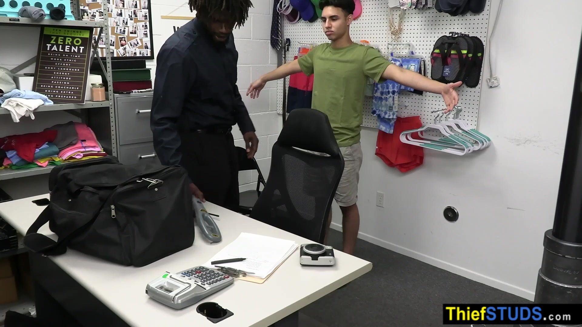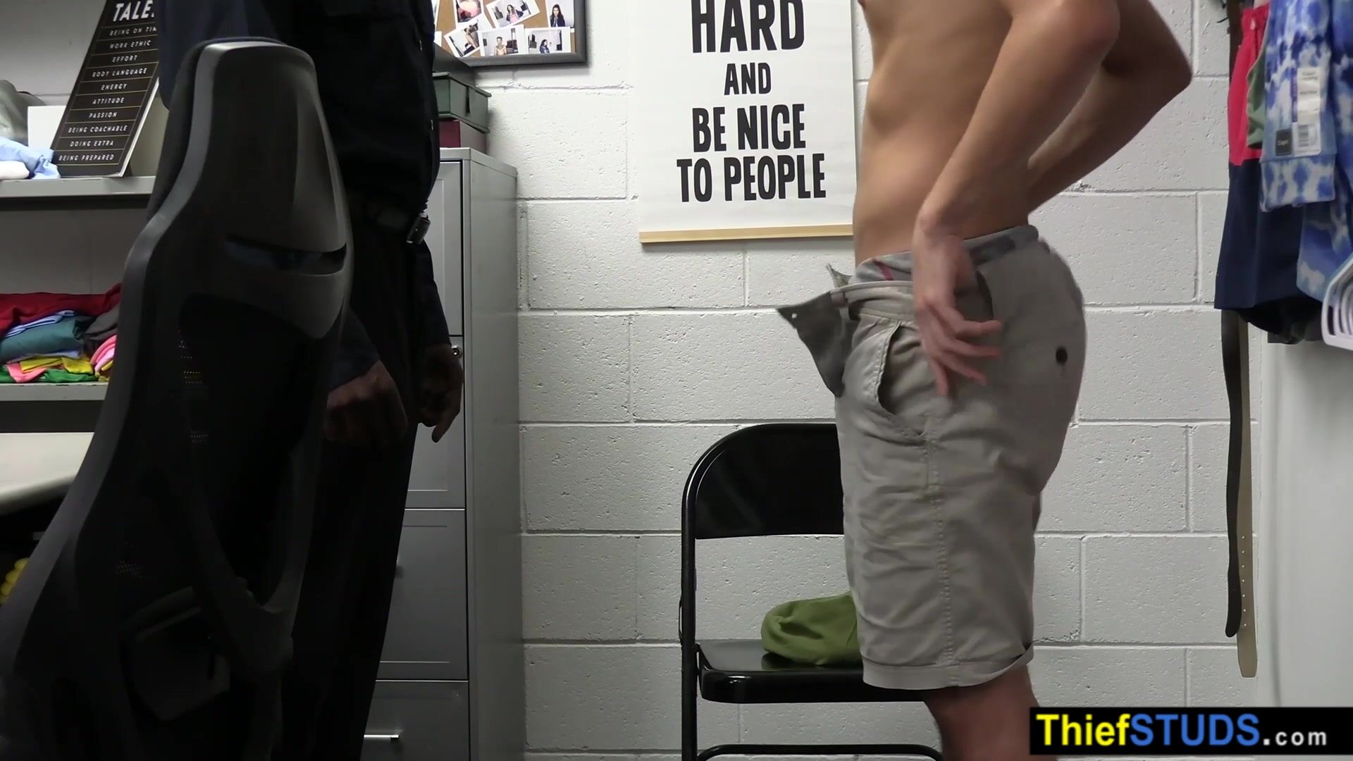 BBC LP officer Devin Trez ordering a twink perp Chase Rivers to suck his big black cock after the interrogation when an other teen suspect Troy Harlow arrives and joining to the threesome so they both fucking him bareback