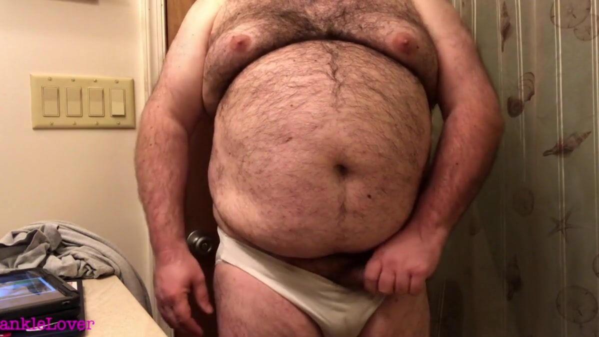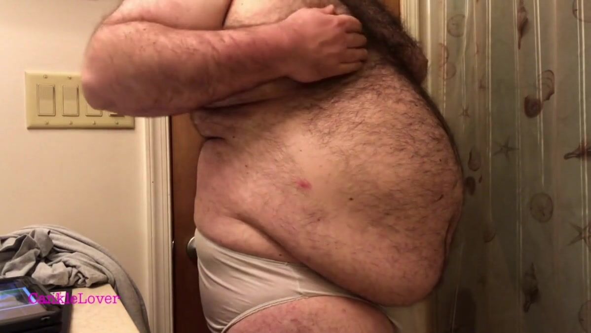 Rubbing my hairy breasts, belly, and sissy clitty while wearing my white, nylon panties.