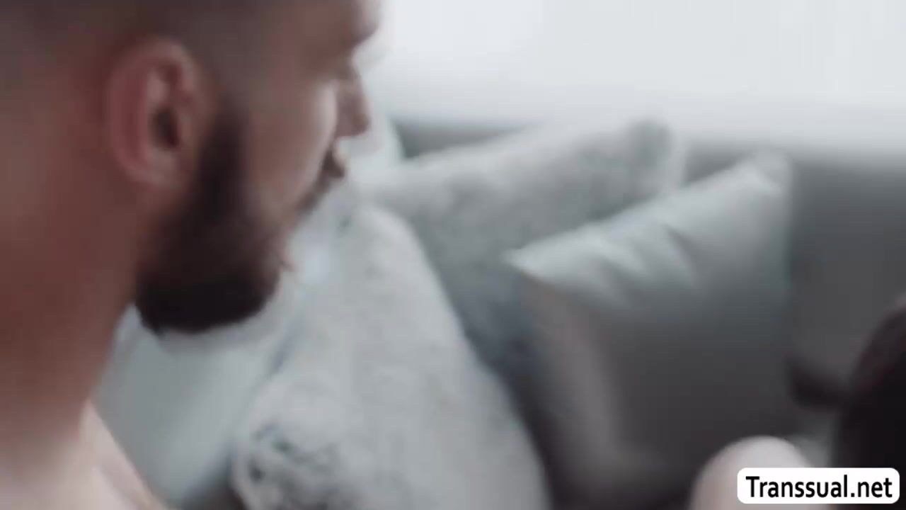 Skinny shemale and her boyfriend get home and they sit on the couch and start kissing each other.Next is,smalltits tbabe sucks the big cock of her boyfriend and in return,her boyfriend sucks her tranny dick too before he fucks her wet ass.