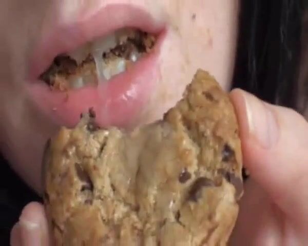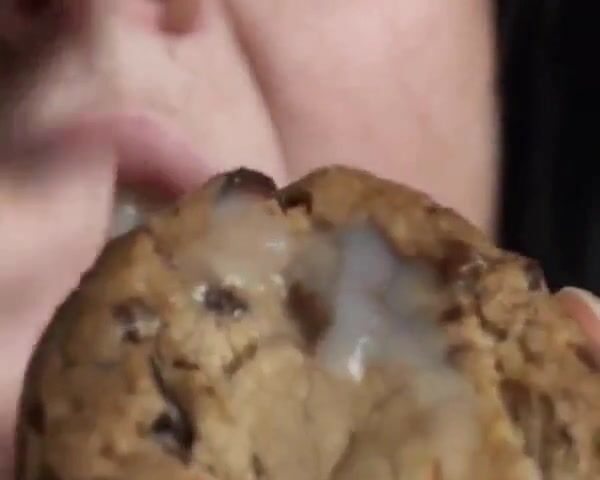 Mollige Brünette melkt Schwanz und isst mit Sperma bedecktes Keks