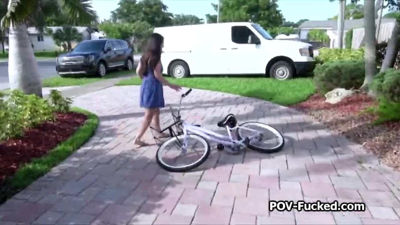 Lovely Asian chick from next door is trying out her new bike. She kinds sucks at it, but she is ready to have some other type of fun.. even for money!