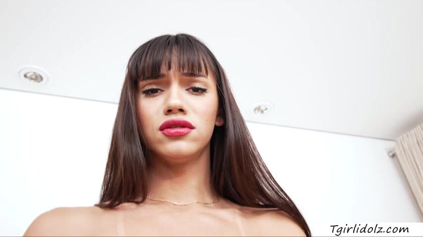 Busty latin shemale Gabriela Ferraz teasing and masturbating
