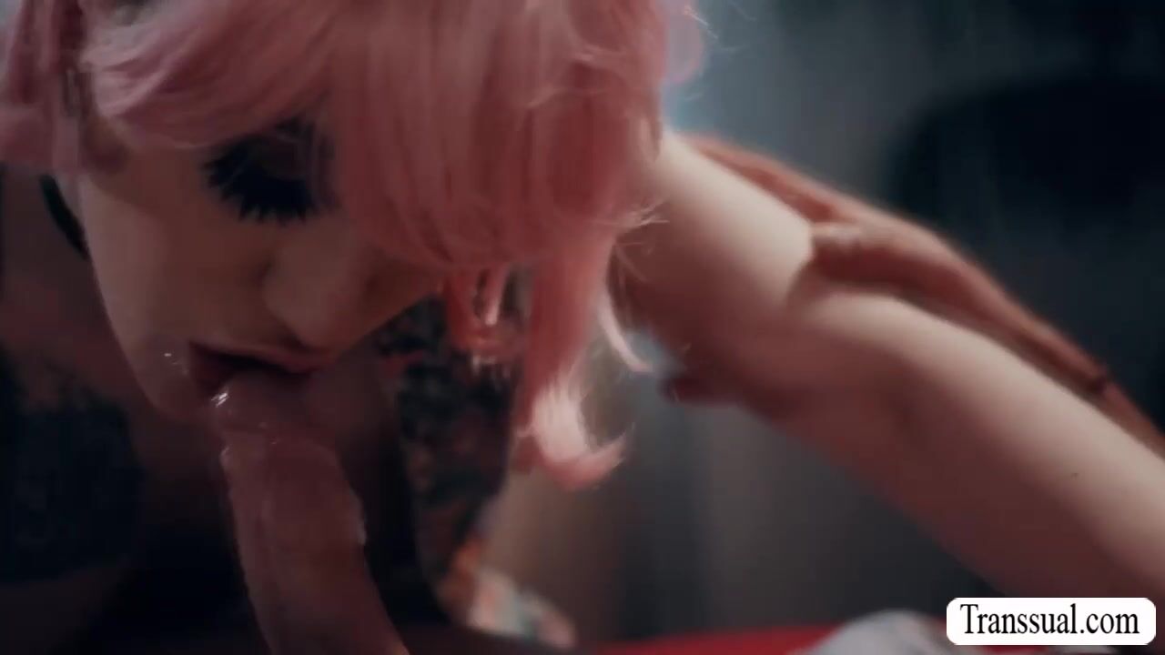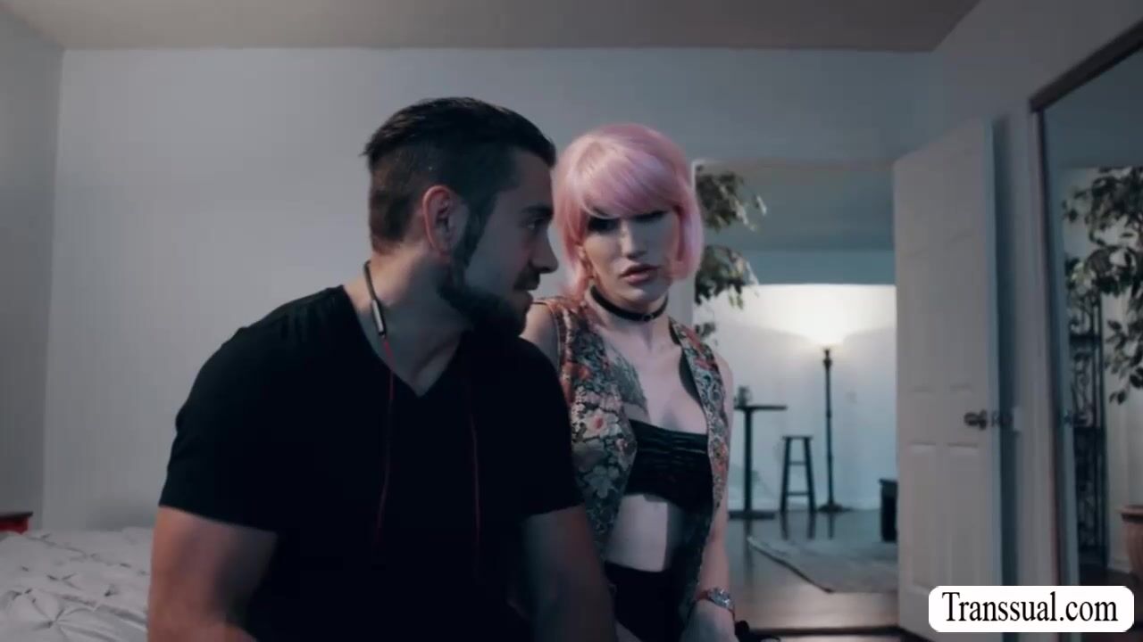 Busty pink haired shemale comforts her stepbrother in his room by letting him suck her hard tranny cock passionately.In return,bigtits TS does the same to her handsome stepbro.After that,slut trans lets stepbro bareback her wet ass so hard.