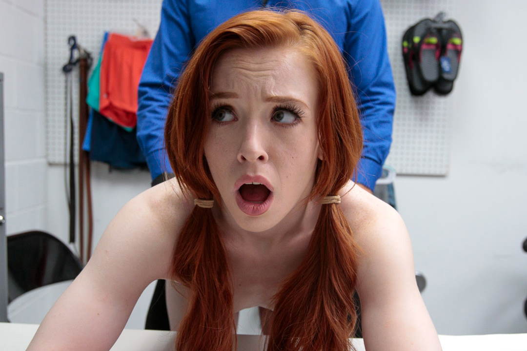 That office desk has seen a lot of pussies but today it is going to hold a pretty redheads firm butt.. so the security guard can fuck her tight pussy!
