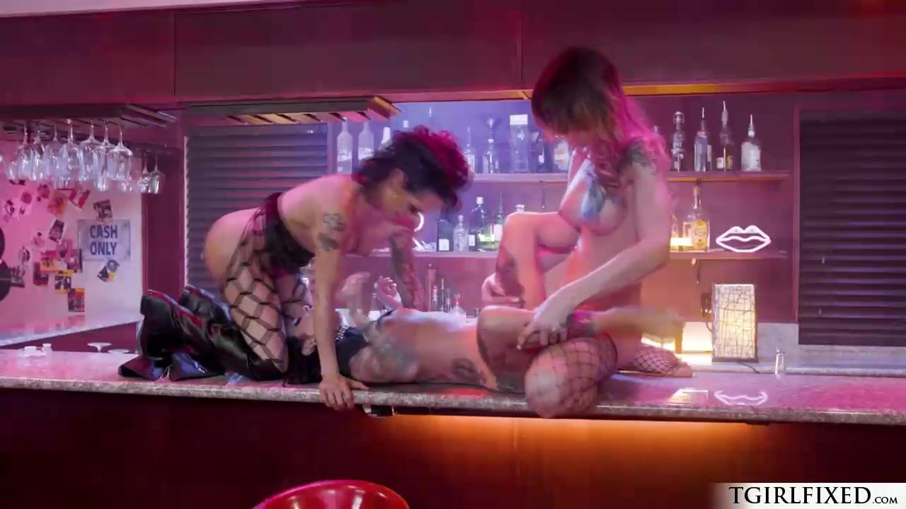 Busty shemale Casey Kisses,Ts Foxxxy and milf female Joanna Angel exchange kisses and stripping.The big tits trannies masturbate and licks her pussy.The tattooed babe rims and deepthroat blowjobs their ts cocks.The big boobs trans fucks her pussy.