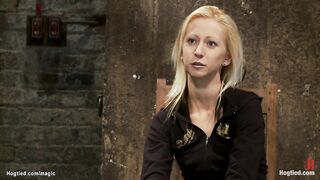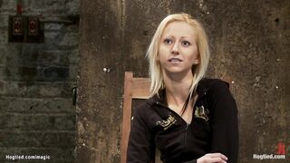 Slim blonde slave Rene Phoenix is hogtied and gagged and ass hooked then pulled in the air and pussy fucked and vibed by master Matt Williams