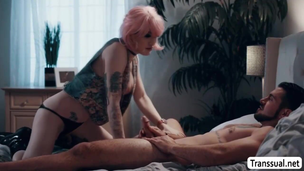 Stepsis pink haired shemale comforts her sad stepbrother by kissing her and sucking his big dick passionately.In return,her stepbrother gets naked and he then bareback fucks her tight wet ass so deep and fucking hard.