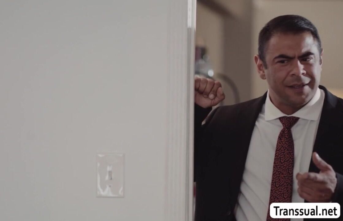 Horny fat stepdad watches his shemale stepdaughter while changing clothes.Instead of getting mad,they start kissing each other on the bed and she then throats the big hard cock of her horny stepdad.In return,stepdad licks and barebacks her ass.