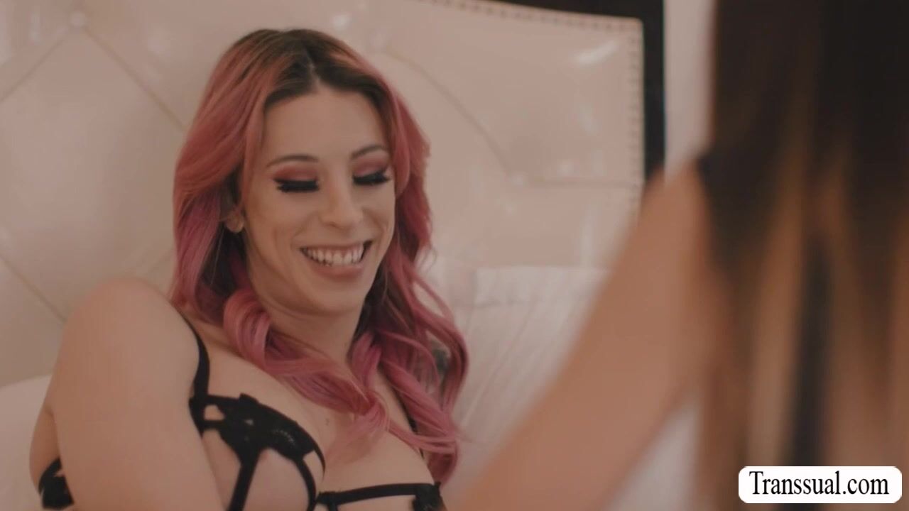 Busty babe goes to the room of her shemale bestfriend and check if shes okay.After that,they get horny and start kissing each other.Next is,brunette babe throats the hard shecock of her TS bestfriend and lets her lick and fuck her pussy after.