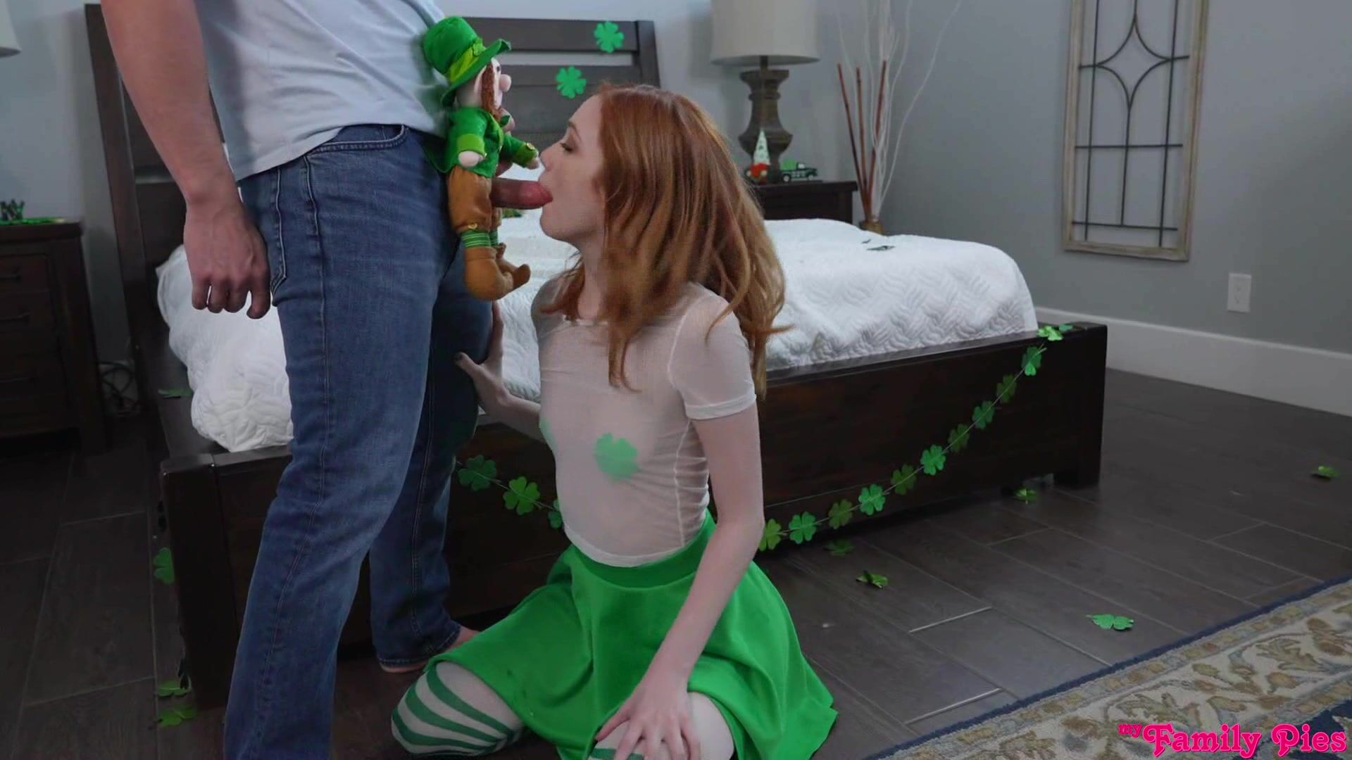 Stepbro cuts a hole in stepsis stuffed leprechaun and put dick in it