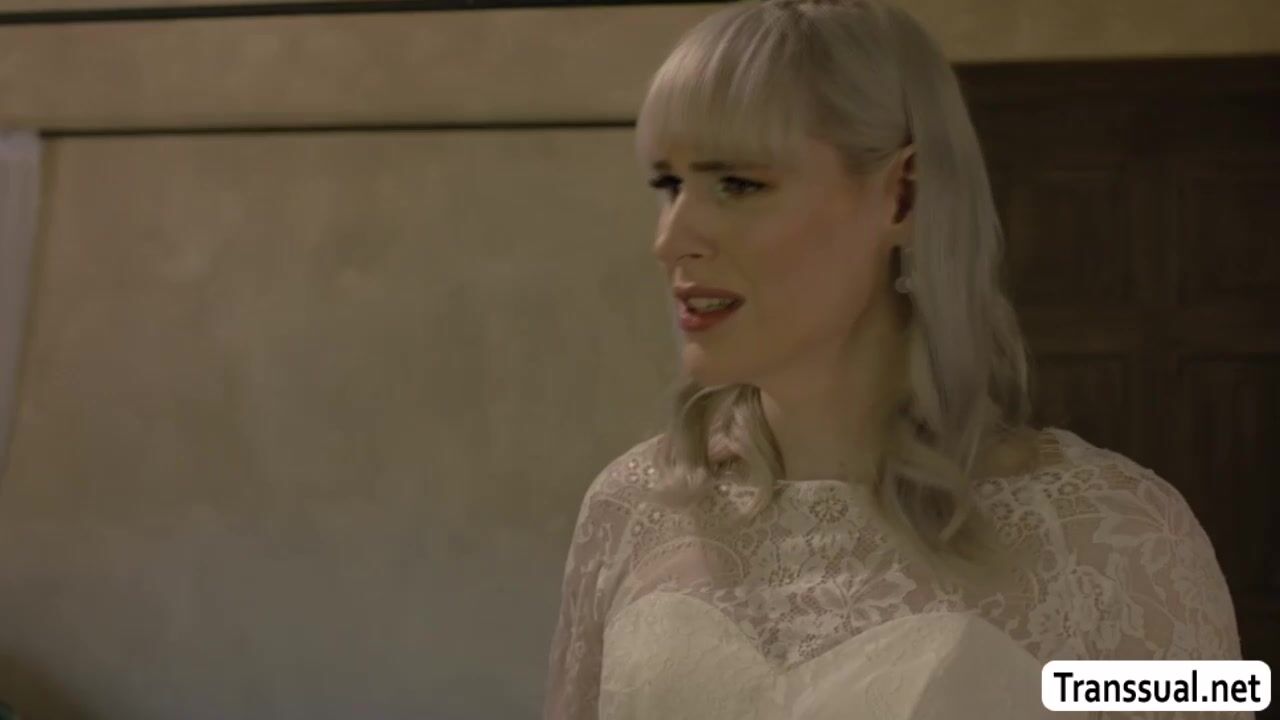 Slut brides maid and the shemale bride are in the room getting ready for the big wedding.Before that,they start kissing each other first and brides maid throats the shecock of the bride passionately,before she rides it.