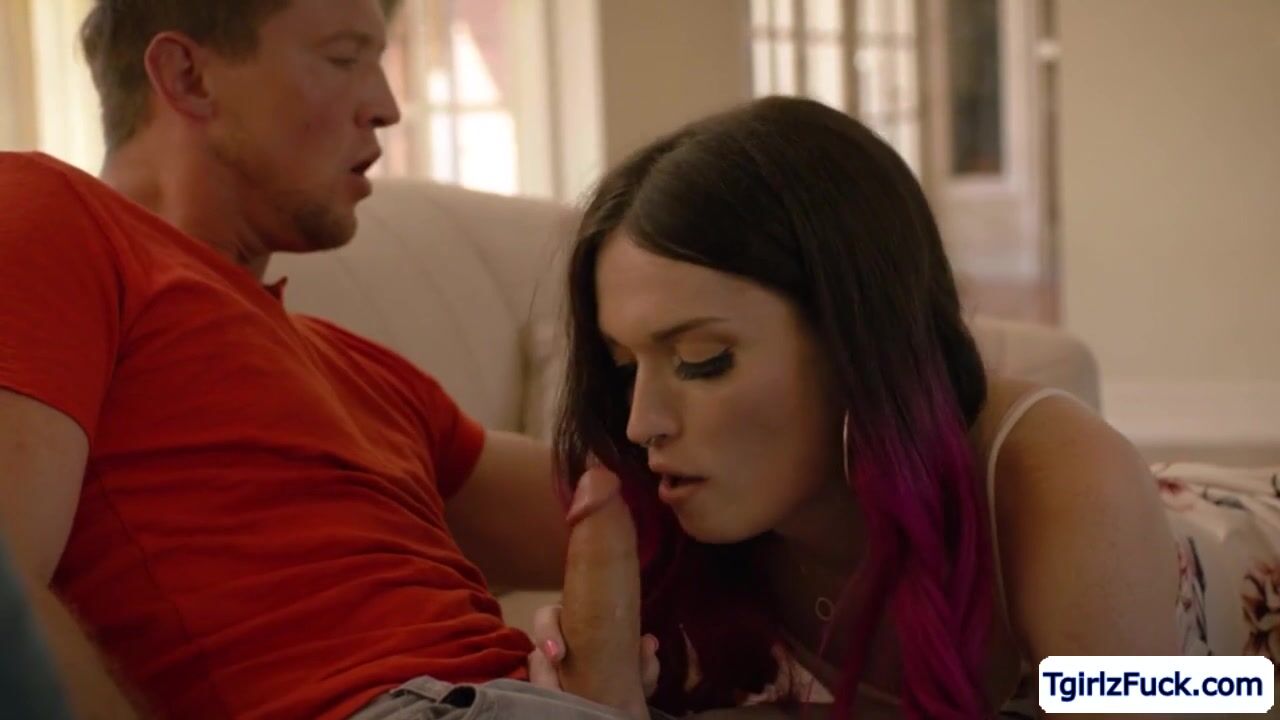 Tall and brunette shemale Natalie Stone kissing hunk stud while stroking her big tranny cock then orally service each others dick with deepthroat blowjob. The big assed babe bend sover to take his cock for a hardcore bareback anal ride doggystyle.