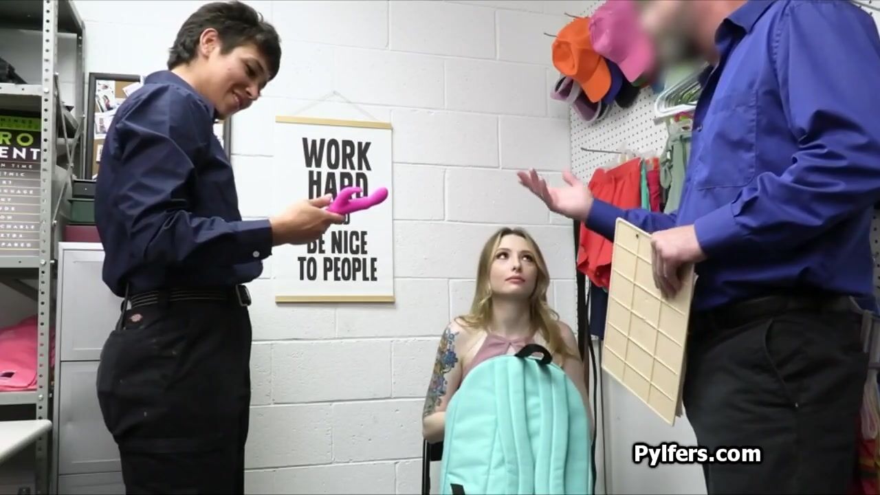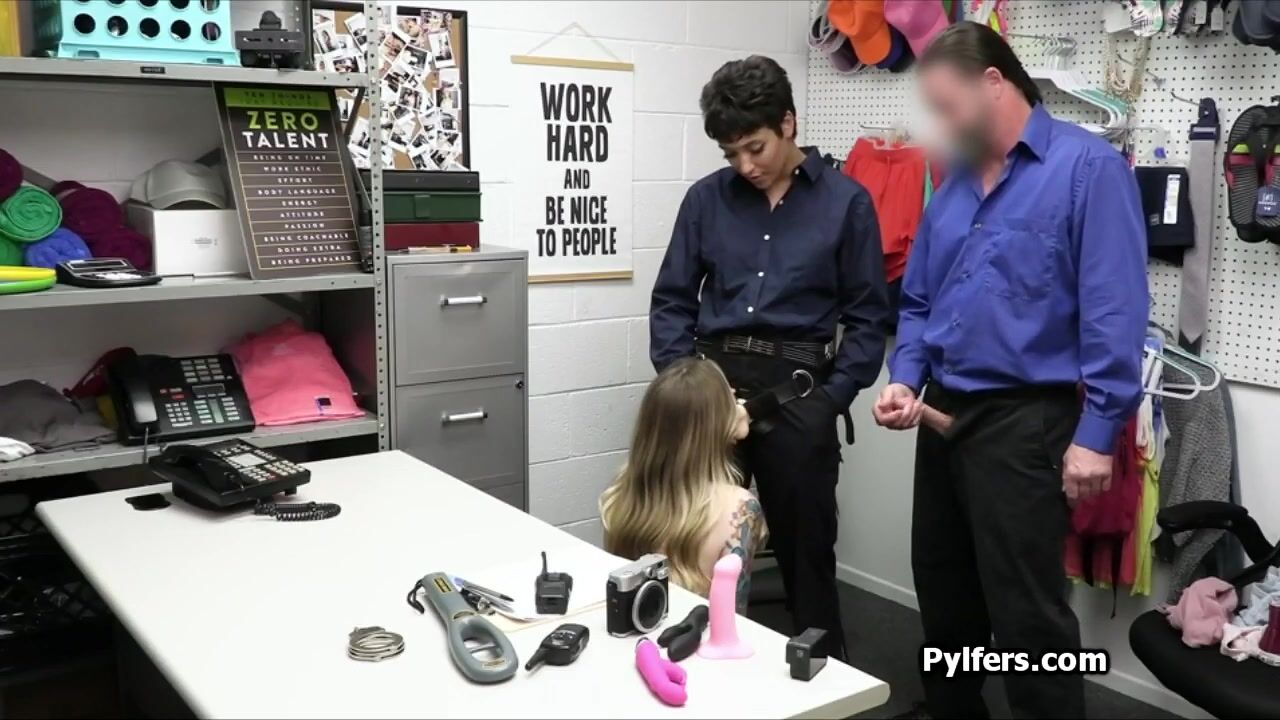 Dildo stealing hottie tag teamed at the backoffice