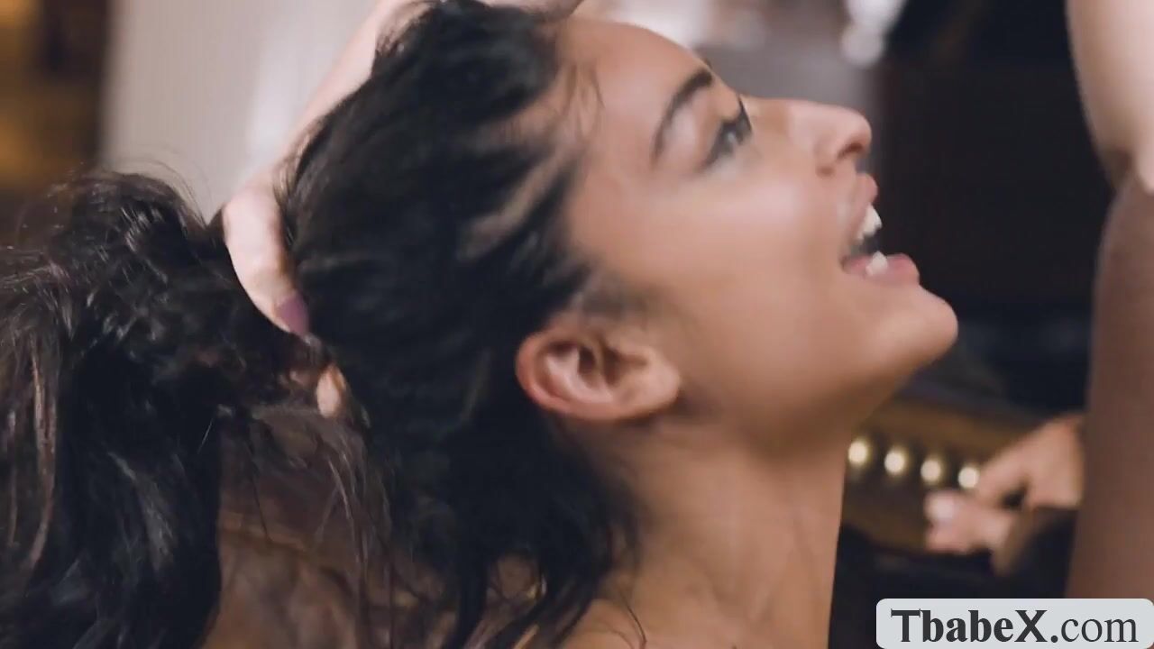 Skinny small tits brunette tbabe Natalie Mars enjoy threesome