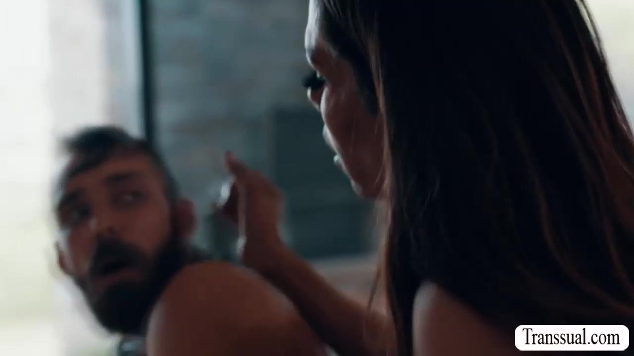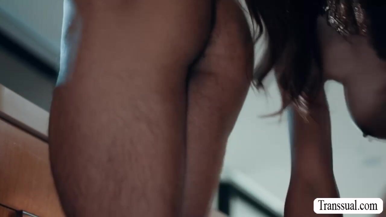 Horny shemale stepmom goes down and lets her new stepson suck her hard tranny cock passionately.After that,she lets her stepson bend over and she then bareback fuck his tight wet ass so deep and fucking hard.