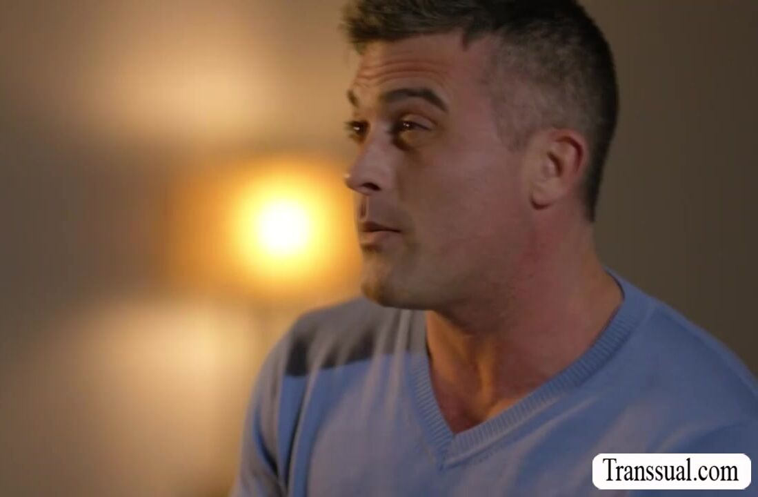 Horny dude goes to the house of his shemale girlfriend to have sex.They start kissing each other passionately and then she throats his hard big cock too.Next is,she lets him bend over and she then bareback his ass so hard.
