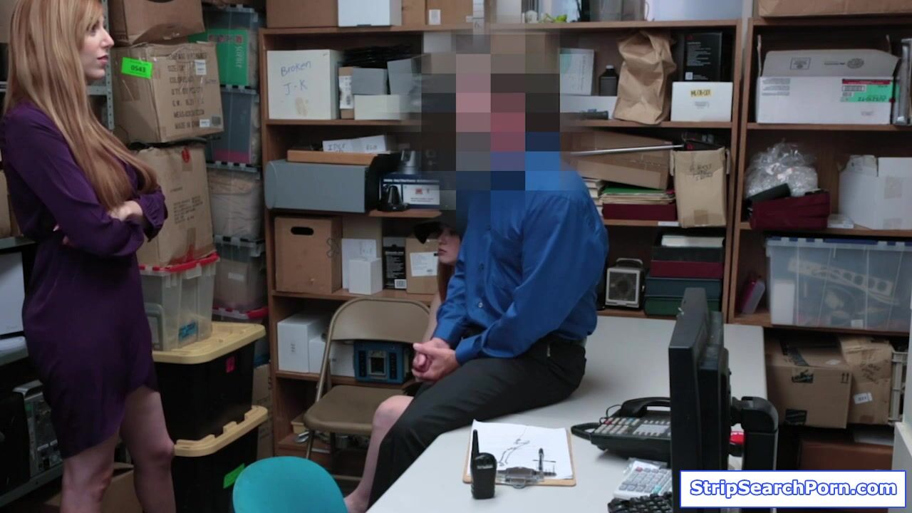 A redhead teen babe and her big tits stepmom undergo strip search after stealing a necklace.The officer tells them to cooperate so they can leave clean.The milf and the stepdaughter blowjob their big cock then bend over for a doggystyle fucking.