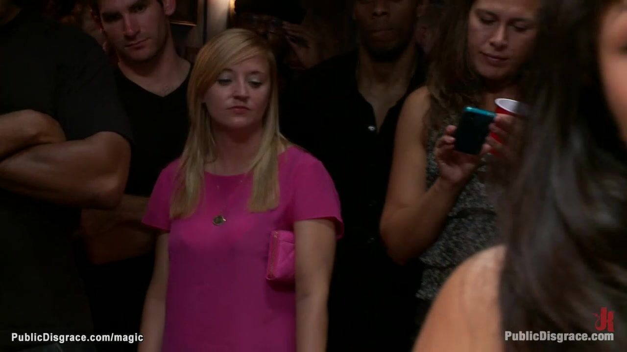 Little Asian slave Yuki Mori gets nipples tormented by lezdom Princess Donna Dolore then deep throat fucked by bbc and pussy banged by John Strong in public