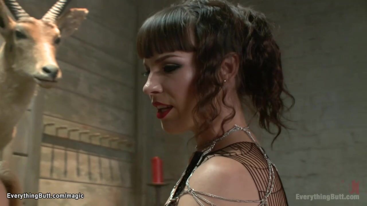 Brunette lezdom Dana DeArmond spanks and fingers asses to lesbian hotties Jessie Volt and Candice Dare then fucks their gaping butts with thick strap on cock