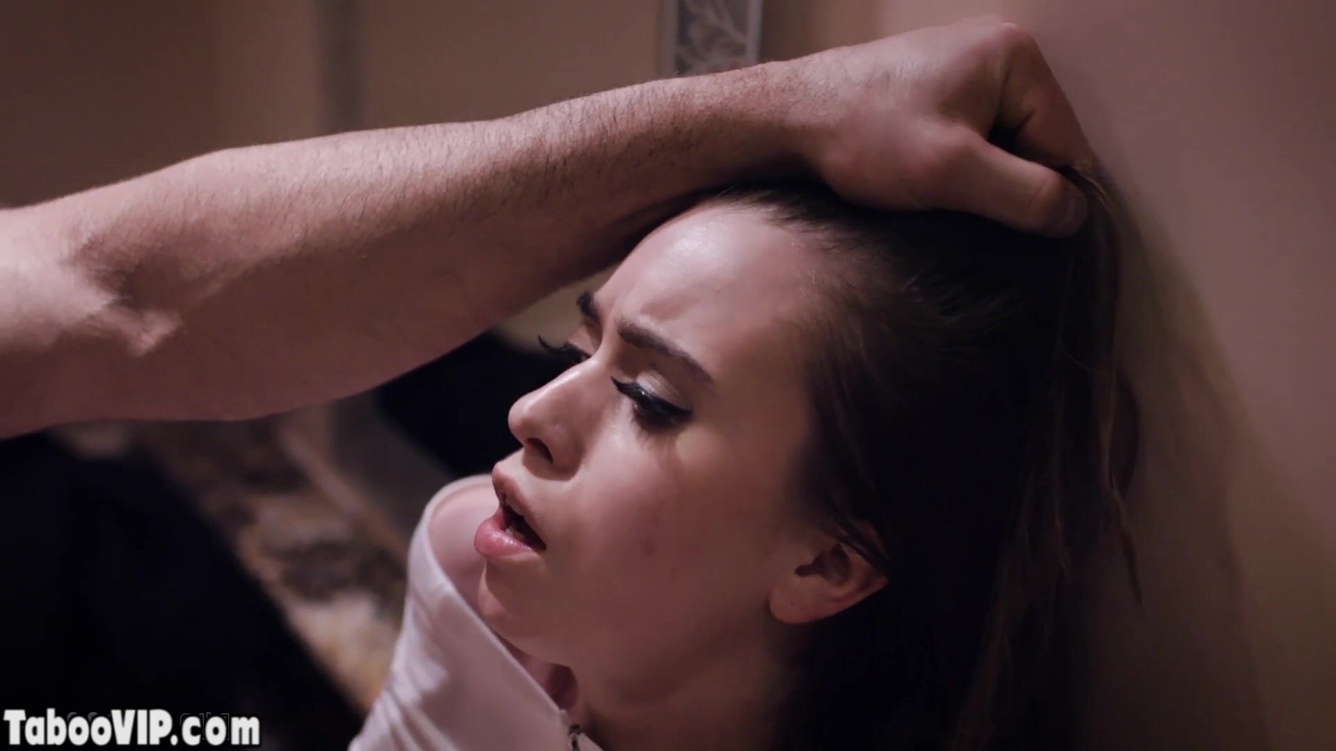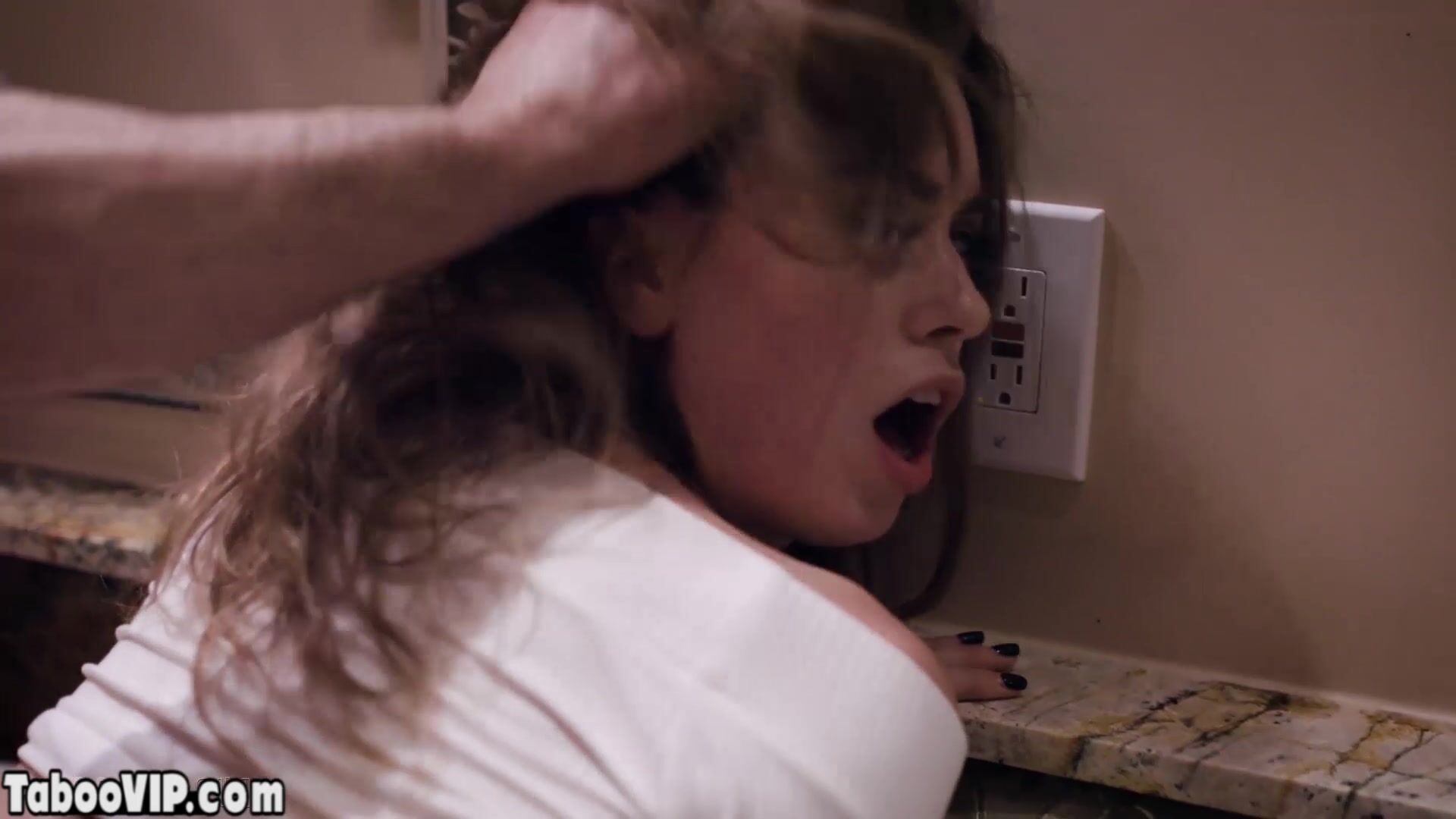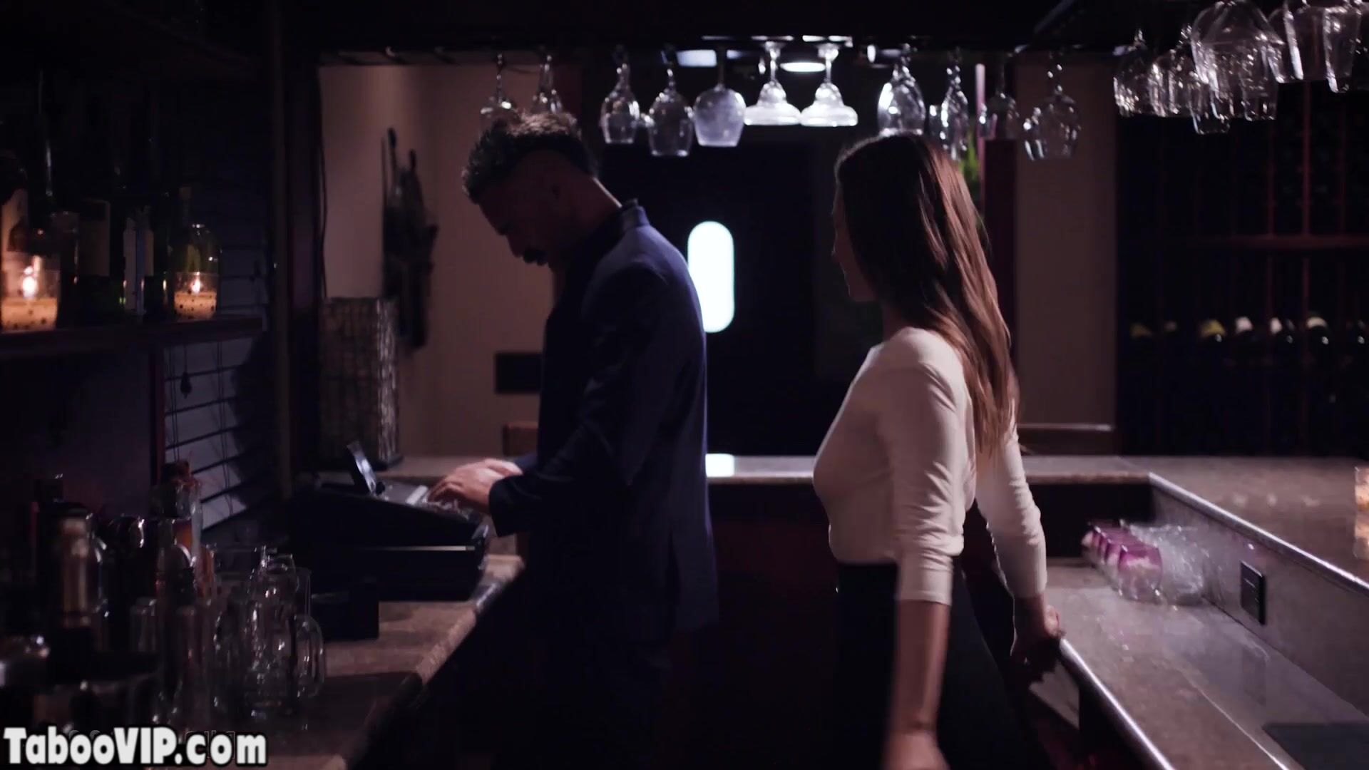 Dirty old boss ordering his hot skinny brunette teen employee Jill Cassidy to suck his big dick then he fucking roughly the waitress trimmed pussy in the bars toilet