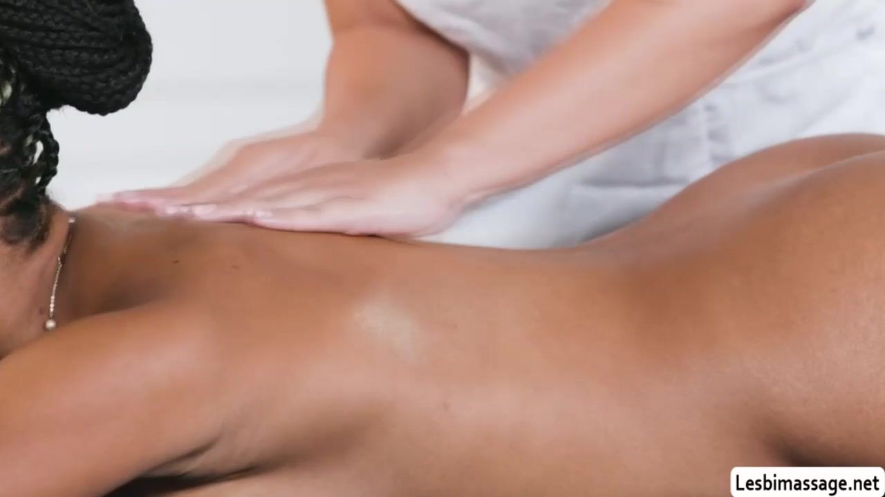 Hot masseuse meets her ebony customer in the massage parlor.After that,big tits ebony gets naked and lets the masseuse massage her back.Suddenly,the masseuse gets horny and start licking the ass and pussy of her black customer.