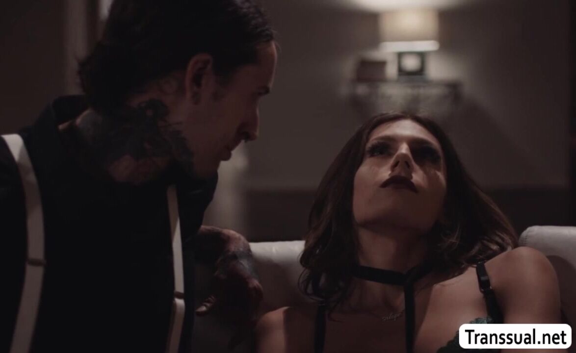 Curvy shemale lets her handsome boyfriend wait on the couch while shes wearing a seductive lingerie.They start kissing each other on the couch and she then throats his hard big cock passionately.In return,her boyfriend bareback fucks her wet ass.