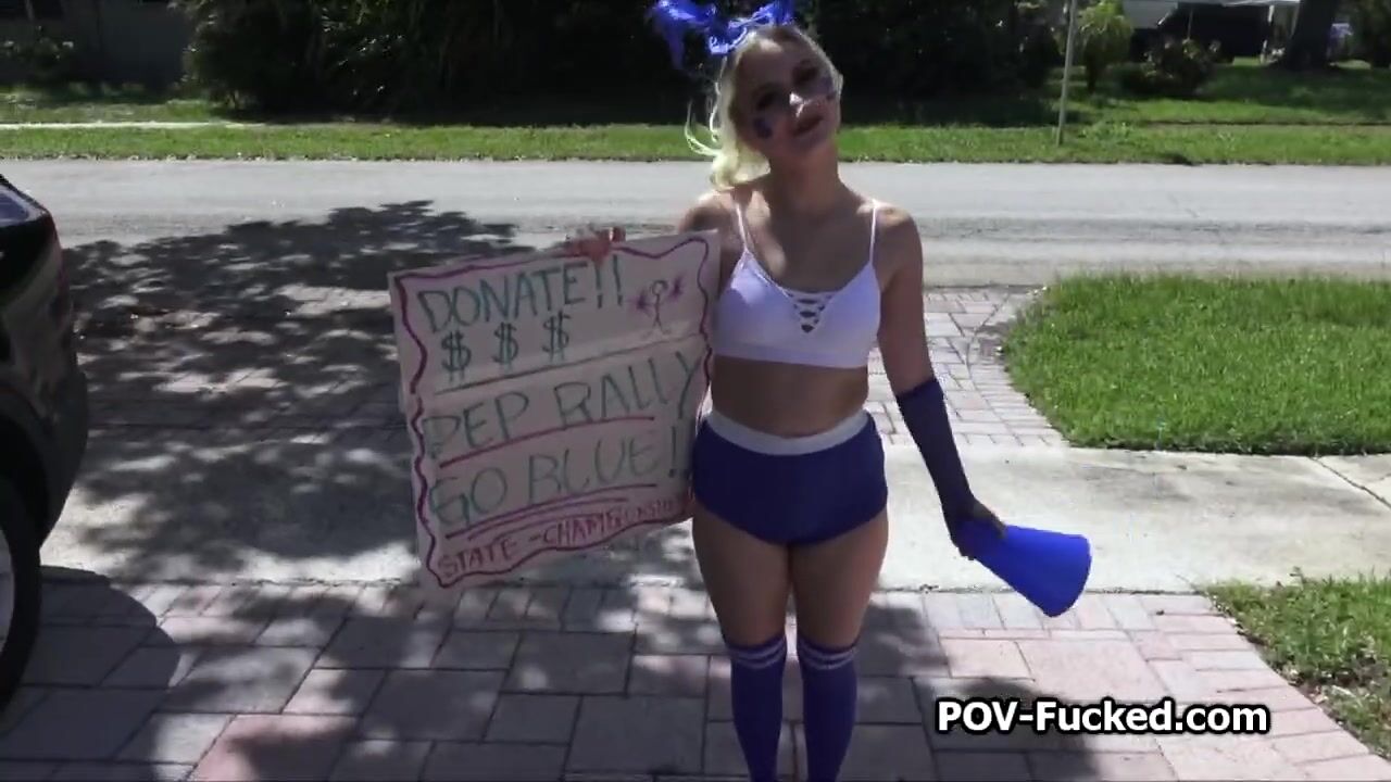 What a cutie just got out of this white van. She looks super fuckable. Her name is Aria and she is rising money for the football team. Fuck yes!