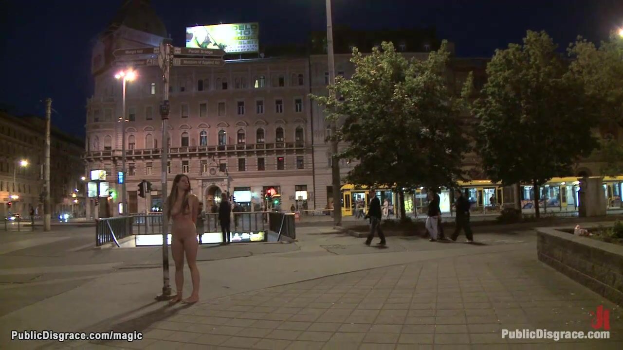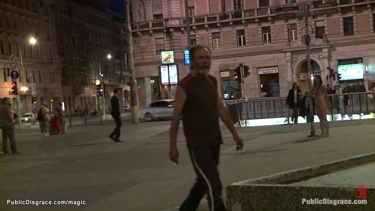 James Deen and Princess Donna Dolore walk naked big tits brunette Czech babe Mona Lee outdoor in public then big cock fuck her on stairs and leave her naked in downtown for onlookers