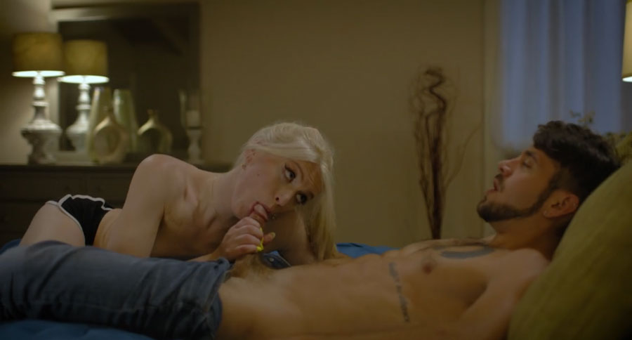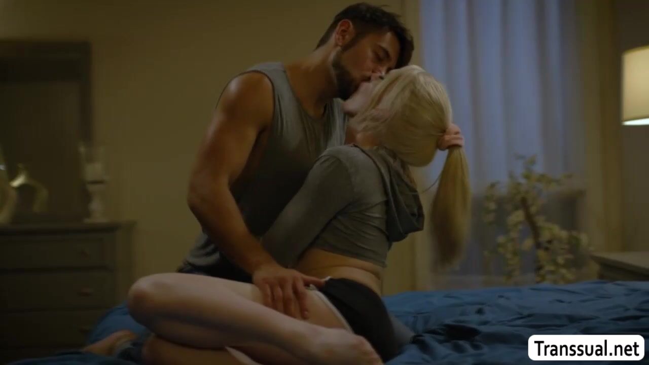 Stepbro goes to the room of his shemale stepsister and then lock the door.They start kissing each other on the bed and she then throats his hard big cock passionately.In return,stepbro bareback fucks her tight wet ass so deep and hard.