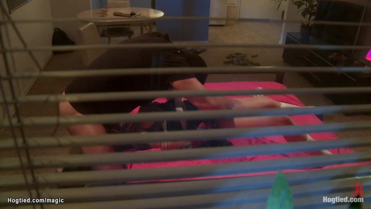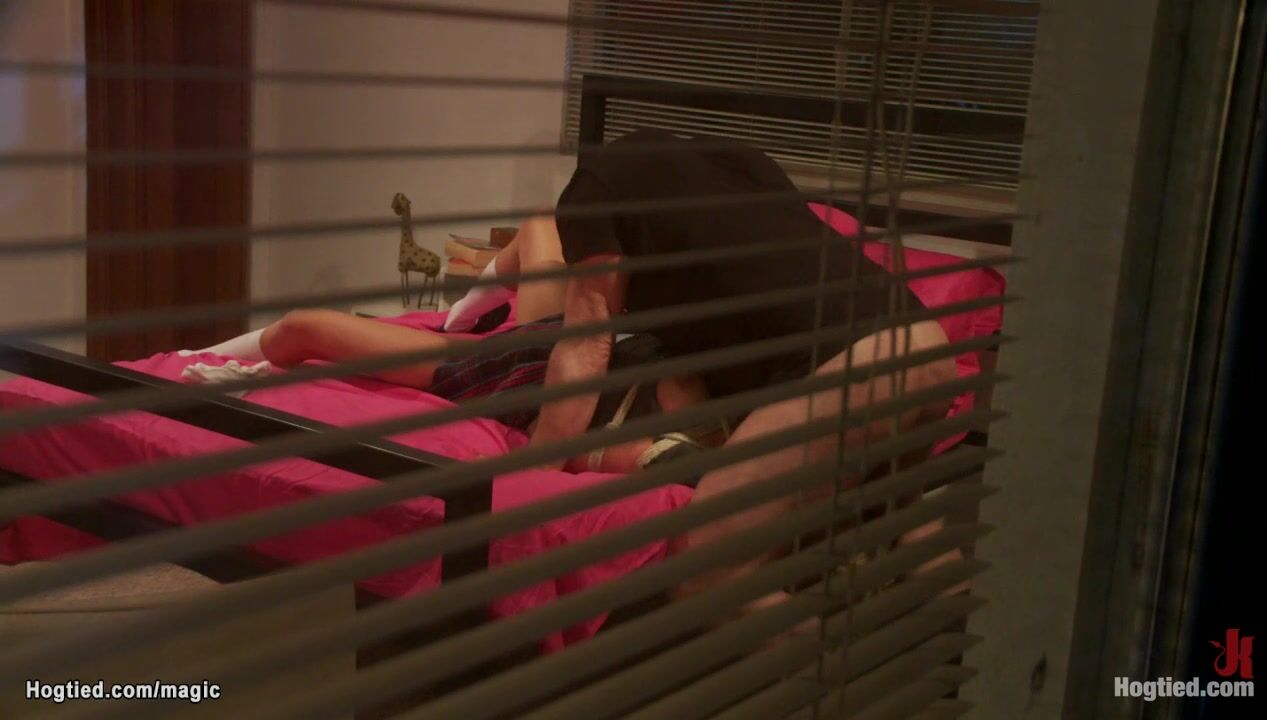 Hot blonde student Kaylee Hilton is tight bound by masked pervert intruder Mark Davis and then face and pussy rough fucked by his big cock