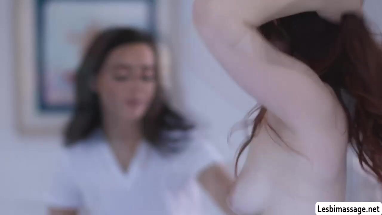 Sexy masseuse cheer up her miserable look of her client.They go inside the shop and she starts massaging her customers body.After that,they get horny and they start kissing and licking each others pussy before they switch to scissor sex.