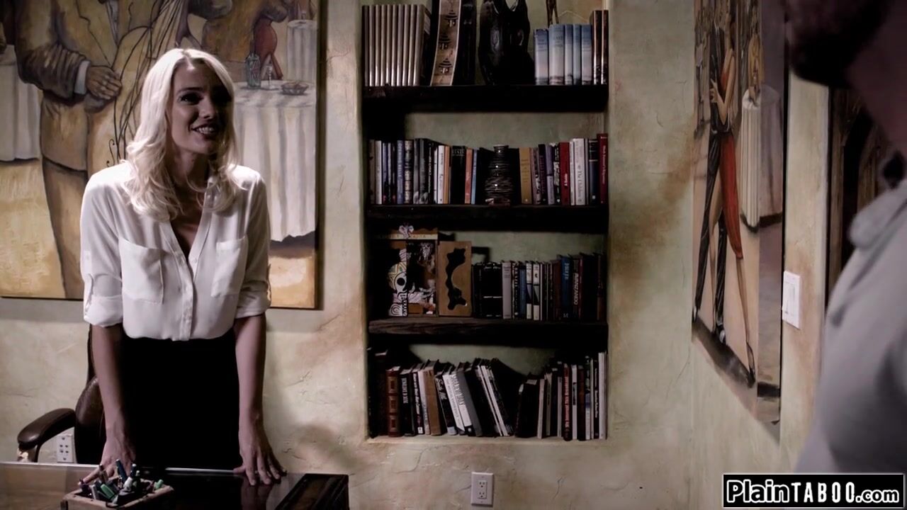 Busty matchmaker matches herself to her hot client.The big tits blonde gets him to kiss her.She spreads on the desk and he licks her shaved pussy.On her knees shes deepthroat facefucked.The babe has her snatch up and gets banged by his big dick