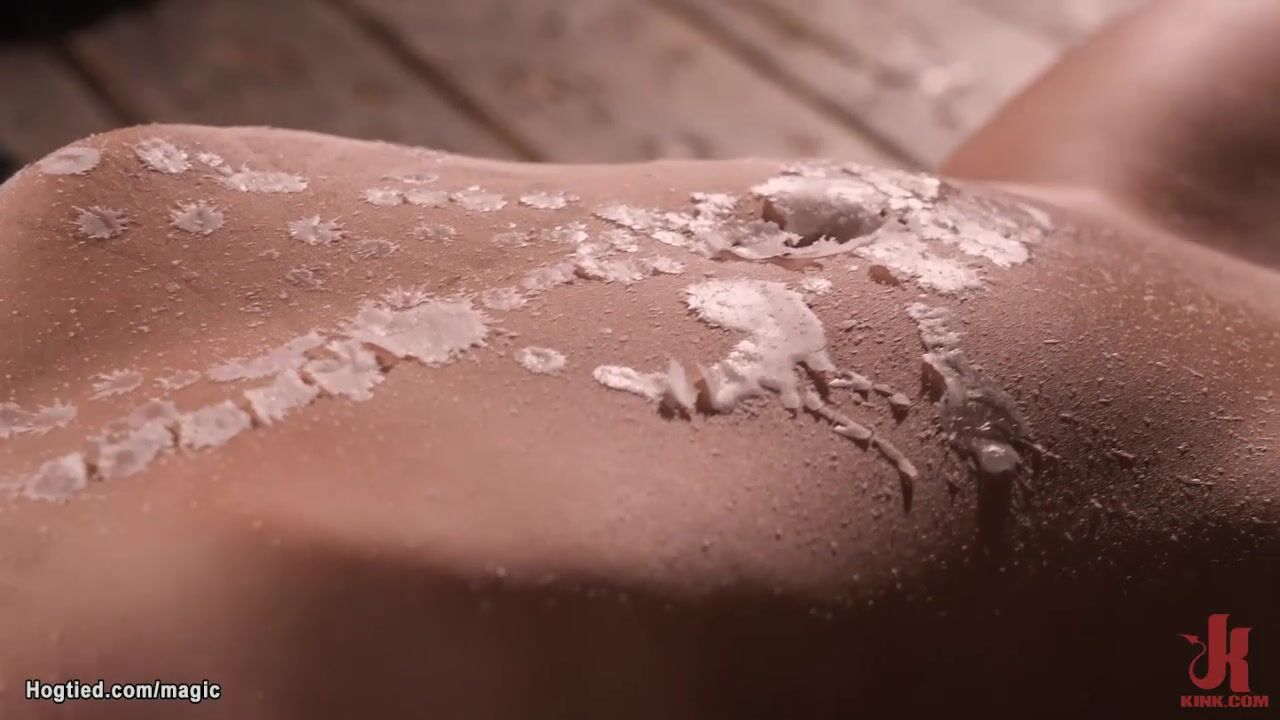 Bound on her back over wooden box hairy pussy slave Gia Derza gets anal fisted then in suspension pussy and ass machine and dildo fucked by master The Pope on hogtied