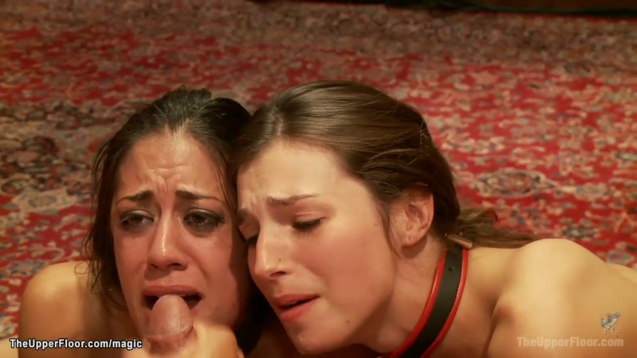 Ginger slave in sideways suspension gets vibed and whipped then Kristine Kahill and Lyla Storm fucked in pussy and mouth till get cummed at party in the Upper Floor
