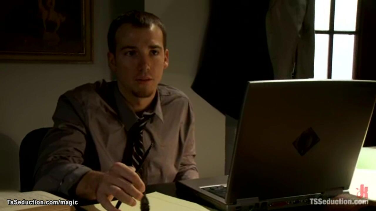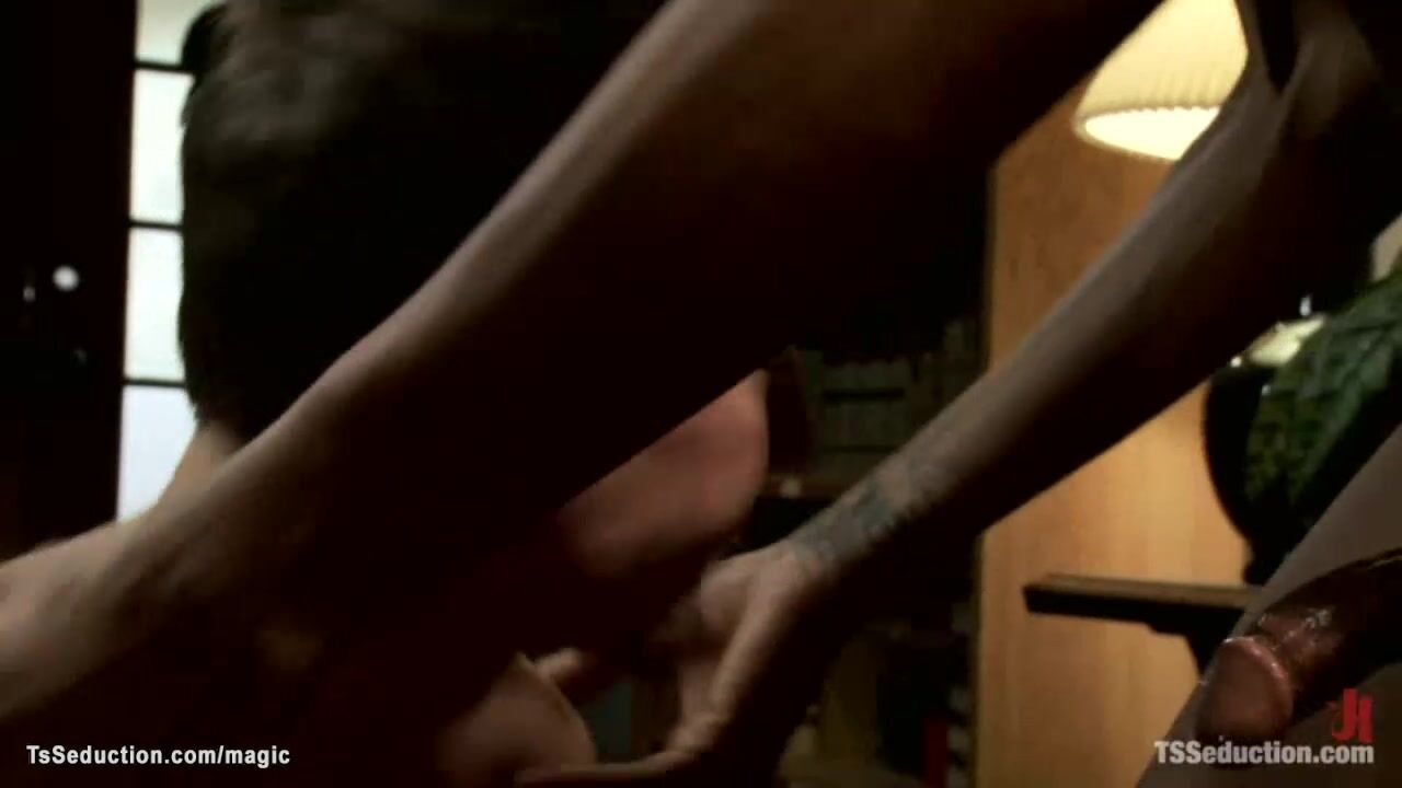 Tall big tits black shemale lady Natassia Dreams handcuffs business man Alex Shoots and with bbc fucks him in mouth and ass in the office