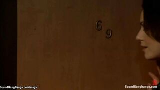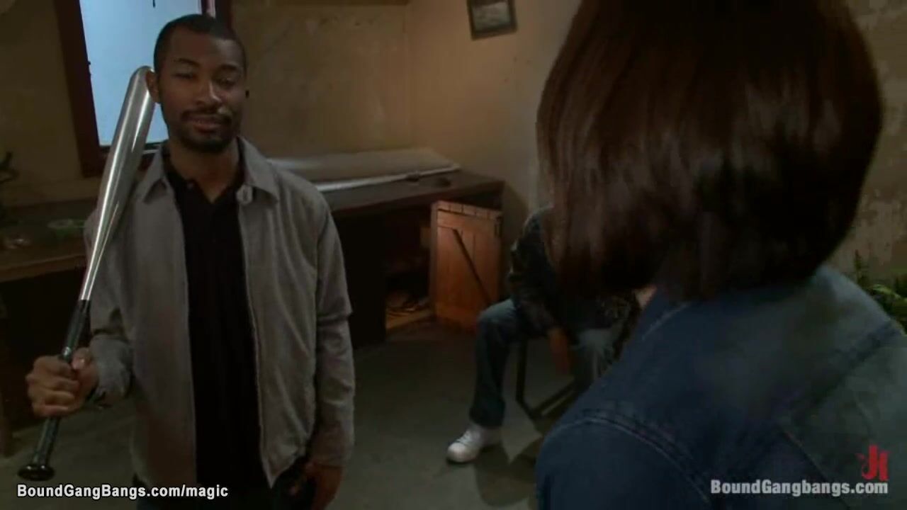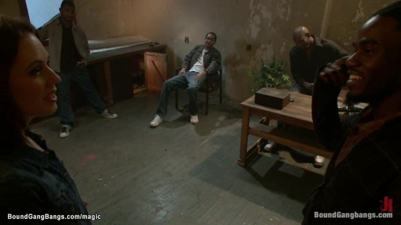 Hot brunette girlfriend Sarah Shevon pays boyfriends debt to interracial gang and in bondage rough anal gang bang fucked by huge dicks on old mattress